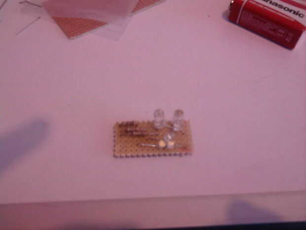 El interruptor se añadirá en el cable adaptador por lo que no hay que preocuparse como en su protoboard. Una vez que tienes todo lo que en el lugar correcto puede soldar en. No se olvide, la idea es mantener este circuito tan pequeño como sea posible.