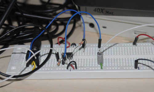Conecte la entrada a una fuente de audio, como los auriculares de un estéreo o un reproductor de MP3. NO se conectan a las salidas de nivel de altavoz de un amplificador a menos que estés seguro de las salidas < = 5V. Cualquier fuente de audio diseñado para auriculares de la unidad debe ser segura. Ya que uso a los auriculares de un estéreo, todavía puedo oír la música incluso cuando el circuito está conectado. Si usas algo con sólo una salida, como un reproductor de MP3, puede conectar dos conectores TRS en paralelo y luego alimentar el audio desde el conector de 2 º a un conjunto de altavoces amplificados o auriculares.