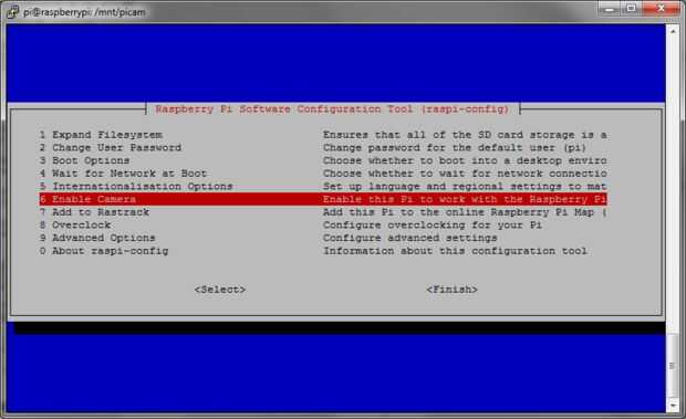 Una vez que has hecho en el escritorio de frambuesa pi, vamos a abrir una sesión de terminal por lo que podemos conseguir ese trabajo de wifi. Ahora escriba sudo raspi-config para que aparezca la herramienta de configuración. Vas a querer habilitar SSH así que podemos zanja el teclado y el ratón y el monitor. Opción 9 opciones avanzadas utilizando las flechas de las teclas y [enter] y luego seleccione la opción A4 SSH y permiten. Esto nos permitirá conectarnos desde nuestro PC. (dulce). Mientras estamos en la selección de la herramienta de configuración, siga adelante y seleccione la opción 6. Activar la cámara. Y salga de la herramienta.