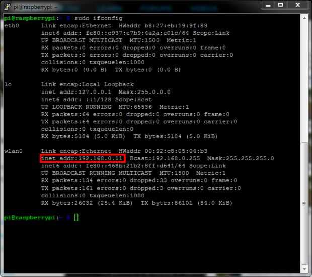 y encontrar la dirección ip de su pi. Usaremos esto en el siguiente paso.