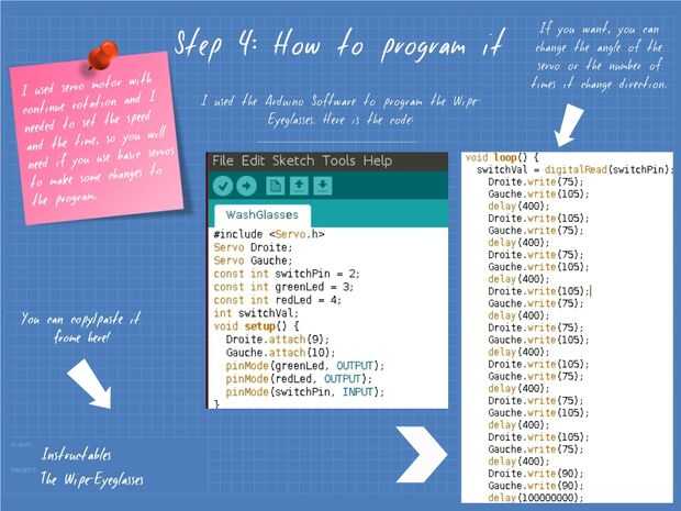 Utilicé el Arduino Software para programar los Eyeglasses de trapo. Aquí está el código: