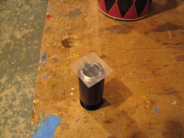 Originalmente pensé que esto iba a ser ingeniería vudú porque no puede ver el haz del láser. Resulta que no es tan difícil. En primer lugar establecer un sistema para marcar círculos o los bordes de su camino de haz con pelos de Cruz en el centro de la cinta scotch.