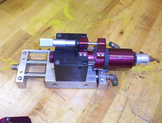 El sistema de entrega de la viga se compone de un espejo de la curva, una cabeza de proceso, un potenciador de la calidad de corte y polarizador circular y un expansor de haz. Para unir el potenciador de calidad de corte para los adaptadores de dos G-100 fueron trabajados a máquina de aluminio (1, 2). El potenciador de calidad de corte mejora la forma de la viga G-100, y el polarizador circular evita que el rayo que refleja hacia la cabeza del láser. Ambas partes vinieron de Mecanismos láser. La cabeza de corte fue fabricada por Haas LTI.