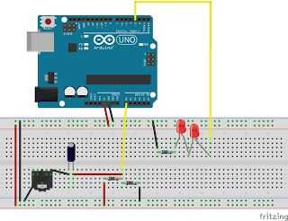 - Coloqué los 2 LED en digital de salida 3, agregar un resistor en serie para mantener las tensiones adecuadas a través de los LED.