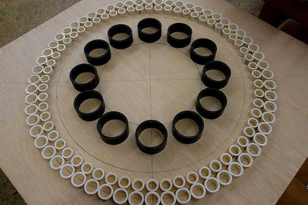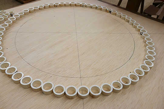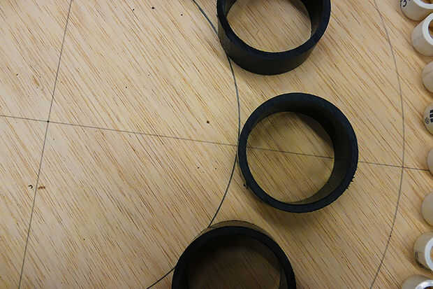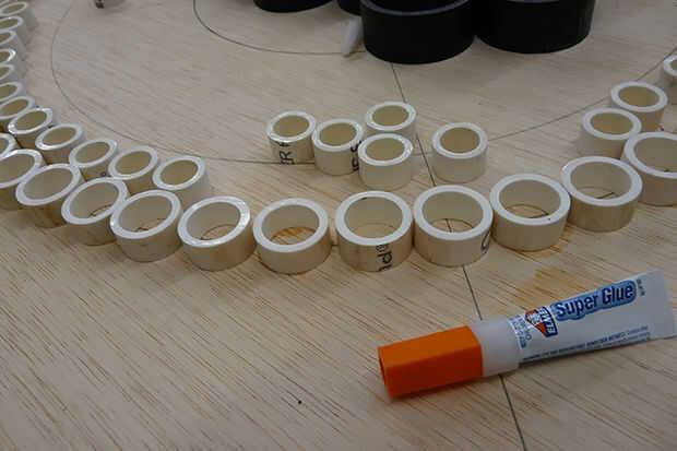 Después se traza la línea, comenzar a colocar los anillos de PVC en la línea. Como mencioné antes no va a ser preciso, aunque siempre y cuando el círculo se ve como un círculo aún será bueno y no perder cualquier estética.