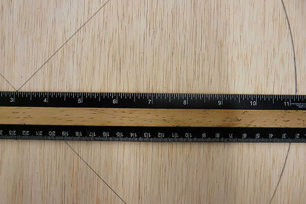 Desafortunadamente no tomo una foto de este paso, pero es bastante explica por sí mismo. Marque el centro del tablero. La forma más sencilla de hacer que esto es simplemente tomar cada esquina y trazar una línea recta conectando los opuestos juntos, esto dejará una X en el tablero, y el centro de la X donde las líneas se cruzan es el centro exacto de la Junta.