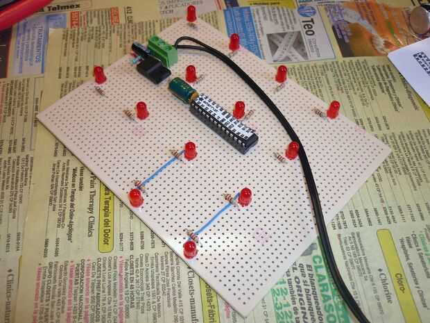 En mi caso, los LEDs se colocaron 12 orificios alejados uno del otro para llenar el PCB que tenía.