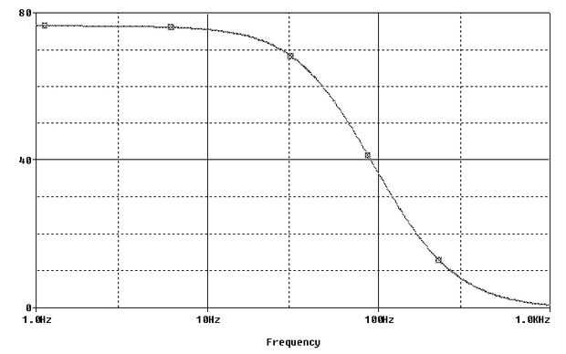 También se puede ver en la última foto un diagrama de bode de la ganancia del filtro que utiliza, se puede ver una frecuencia de corte menor que el calculado, alrededor de 60-70 Hz. Así que asegúrese de creer no sólo en las ecuaciones!
