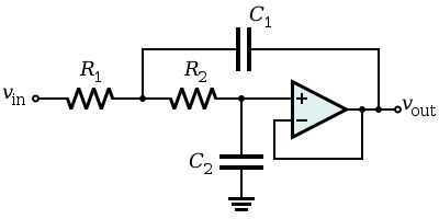 Centrándose en las bajas frecuencias (pulsaciones) elegí un clave Sallen topología activado filtro de paso bajo (imagen 1).