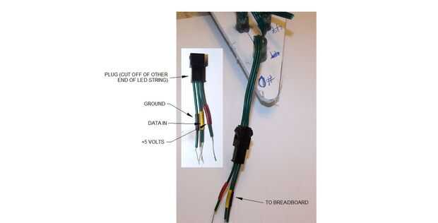 La mayoría breadboards tienen una potencia de buss en cada lado. La fuente de alimentación está conectada a uno de ellos. Asegúrese de que usted observe la polaridad. Si se utiliza un adaptador de pared y tiene un enchufe en la salida, un gato que puede ser por cable y conectado a la placa de lo contrario deberás pelar los cables e insertarlos en a la Junta. Si es el caso, una vez más, asegúrese de que la polaridad. Si los cables no están marcados para la polaridad, deberás comprobar con un multímetro para la polaridad. Si tiene un enchufe, normalmente el centro es el terminal positivo. Aunque el Arduino tiene una salida de 5 voltios, no puede suministrar suficiente energía para funcionar los leds. Un elemento práctico para el cableado hasta la toma de corriente es utilizar un adaptador que tenga un enchufe en un extremo y 2 terminales por otro que se pueden conectar los cables. Tengo algunos en orden pero no había llegado a tiempo para poder utilizar aquí (ver imagen).