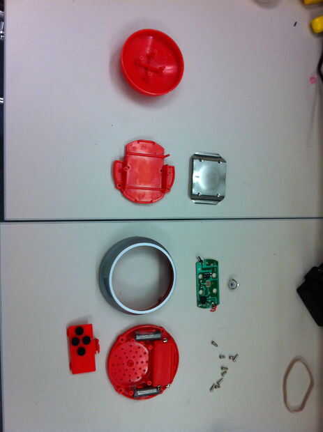 Se presiona el botón - botón A grapas fácil fue modificado para actuar como un botón regular. Es muy durable, por lo que la gente puede vencer sobre ella sin romperla.