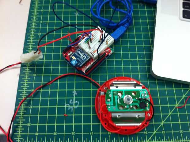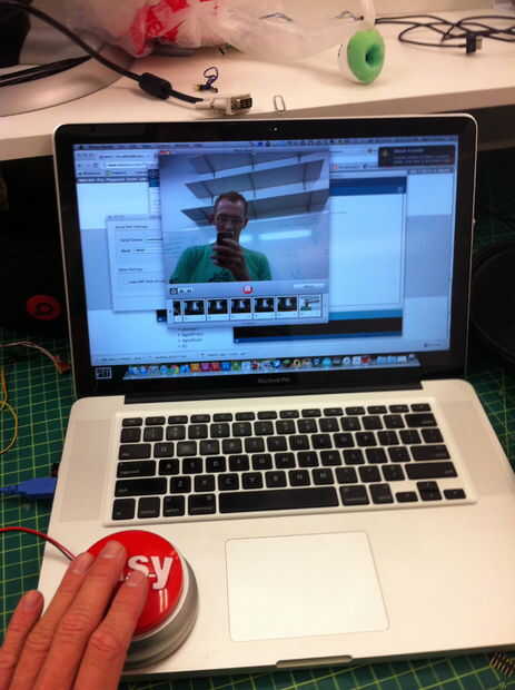 Con OSX Photobooth, presionar la tecla Enter activa el programa para tomar una foto. No quiero exponer a mi computadora para gente martillando en el teclado (espeically si había estado bebiendo). Por esta razón que decidí usar un botón externo, conectado a un microcontrolador de arduino, para activar la aplicación photobooth.