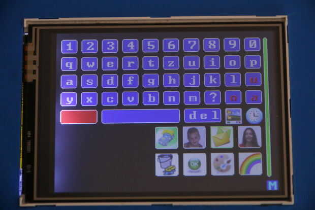 Descargue el bosquejo y lea primero todos los siguientes pasos para una correcta configuración. Si todo va bien, después de cargar el bosquejo en su arduino, verá la ventana principal con el teclado, algunos iconos y la barra de estado de conexión de WIFI (verticalmente en el lado derecho de la pantalla) con color verde para "Conectado" o rojo para "No conectado".