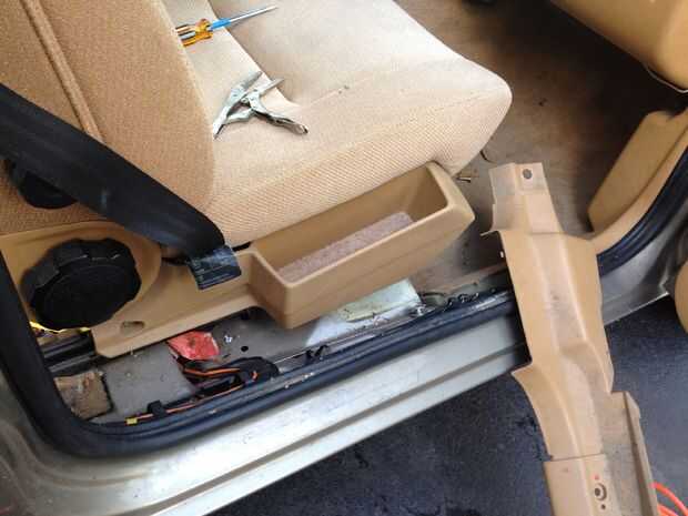 La parte más difícil será funcionar los alambres de los circuitos de Arduino y MOSFET para el LED tiras ellos mismos. Era capaz de perforar un agujero a través de un panel de piso y luego ejecute los cables debajo de las cubiertas de alfombra y panel bajo la puerta, en el área del tablero de instrumentos (ver fotos). Recuerda sellar los orificios al exterior. Hacer masilla.
