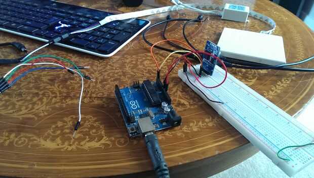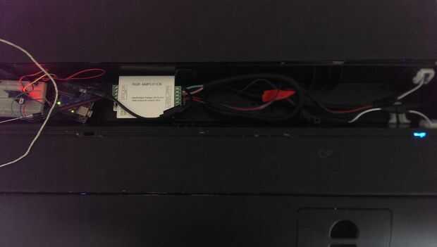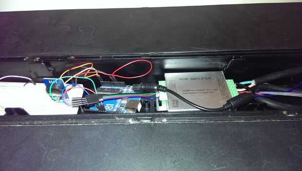 Cuando enciende el Arduino, todas las salidas van a 0. Para hacen las clavijas a tierra la enciende completo golpe por un momento. Pero rápidamente se inicializa y pone las luces al nivel correcto.