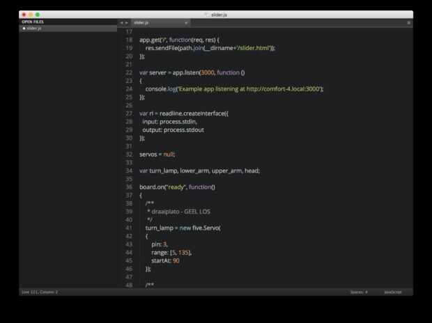 -Si sus pines están conectados a los puertos del mismo que el mío está bueno para ir. De lo contrario este es el momento de cambiarlas. Usted puede hacer esto con el comando: 'vi slider.js'