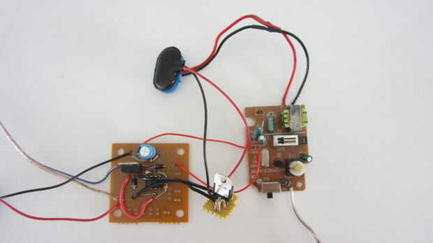 En este caso, el receptor requiere 9 voltios y el circuito de control requiere de 12 voltios. Así usé un circuito regulador de voltaje para traer los 12 voltios de la batería del circuito de control abajo a 9 voltios. Esto me deja a ambos con una batería de energía.