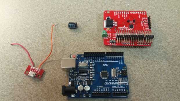 Ahora viene la parte de ingeniería eléctrica de este proyecto. Este escudo es capaz de suministrar hasta 120 mA para 16 LEDs o servos, que se pueden dibujar de Arduino o de una fuente externa; sin embargo, un resistor incorporado establece la corriente en 17,8 mA por canal, que funciona bien (y es cambiable). Por supuesto, el Arduino puede única fuente 200 mA, que es menos que 17.8 x16 = 284,8 mA necesaria para la máxima potencia con todos los canales activos. Aunque usted probablemente solamente raramente tendrá mayoría o la totalidad de los servos de potencia a la vez, y aunque normalmente no dibujan el 17,8 completo mA, dibujan más corriente de lo habitual si o movido más allá de sus límites, que pueden ocurrir al mover o calibración. Por lo tanto, una fuente externa es la mejor manera de ir tan lejos como una fuente de alimentación de la mano.