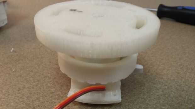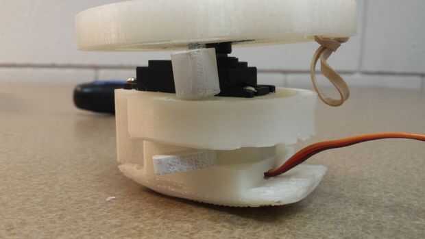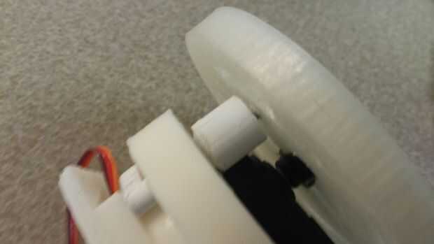 Esta parte es algo difícil de describir verbalmente, así que espero que las fotos y anotaciones tendría más sentido. El objetivo es que la barra poder moverse por el arco de un extremo a otro mientras que el servo se convierte, con la barra siempre en la parte inferior del brazo. Mi diseño original tenía la varilla en la parte superior (en tensión en lugar de compresión) y todavía es posible reorientar las piezas para hacerlo, pero accidentalmente dibujé las piezas que la barra swing alrededor al otro lado del servo en esa configuración. de todos modos, esta parte suele ser rediseñado en un futuro próximo, por lo que no es un diseño final.