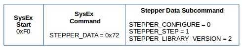 // stepper motor request library version 0 START_SYSEX (0xF0) 1 STEPPER_DATA (0x72) 2 STEPPER_LIBRARY_VERSION (0x02) 3 END_SYSEX (0xF7)
