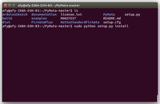 A continuación necesitamos instalar la nueva versión de PyMata que hemos creado.
