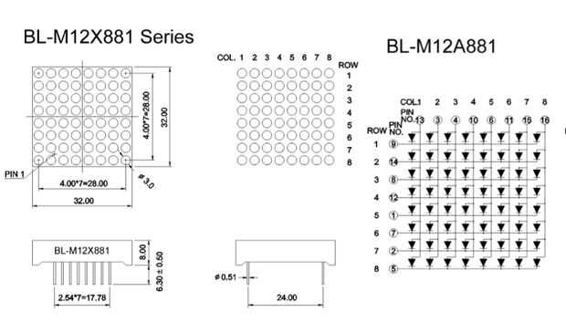 1 - 40 x 8 LED de matriz de puntos;