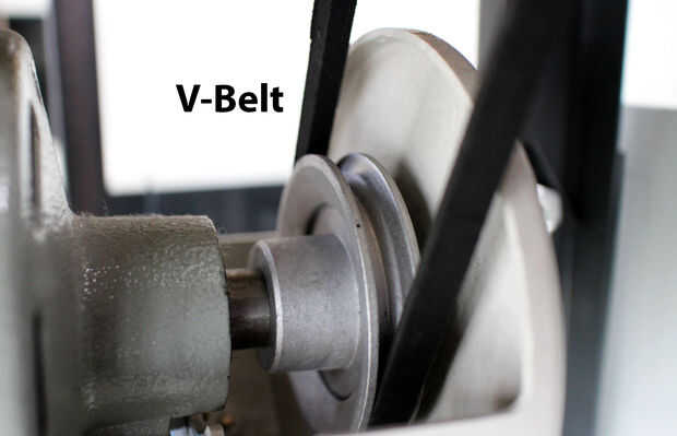Correa: Correas en V son el tipo más común de la correa. Tienen una "V" o trapezoidal en forma transversal, que corresponde a la forma de la polea en que se reclinan. Correas V no se salga de sus poleas como algunas de las otras correas debido a su sección transversal.