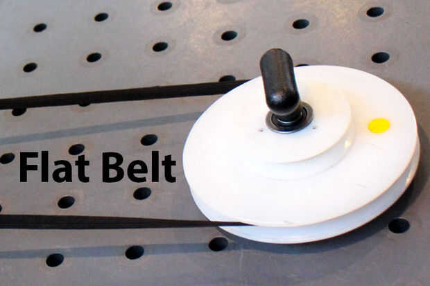 Un sistema de poleas y es uno de los tipos más sencillos de sistemas de la polea. Como describí antes, contiene dos poleas, una conducción de la correa y uno impulsado por una correa. Correa puede tomar muchas formas diferentes; en peldaños de tanque, sierras y máquinas de coser. A continuación se muestran los cuatro tipos más comunes de las correas.