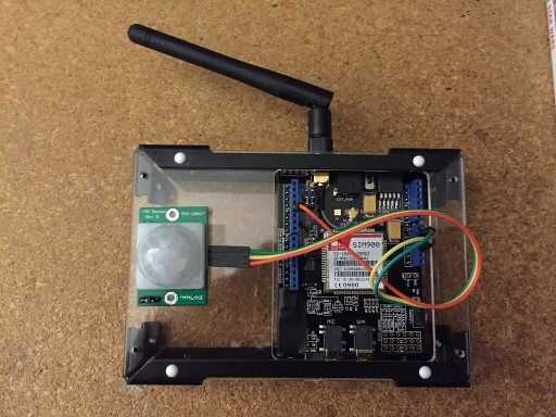 Este proyecto utiliza la mensajería de SMS en lugar de HTTP, ya que quería una alerta en mi teléfono. Es posible convertir para utilizar HTTP, pero tenga en cuenta que mayores SIM900 no manejar POST de HTTP o HTTPS muy bien. HTTP GET funciona, sin embargo.