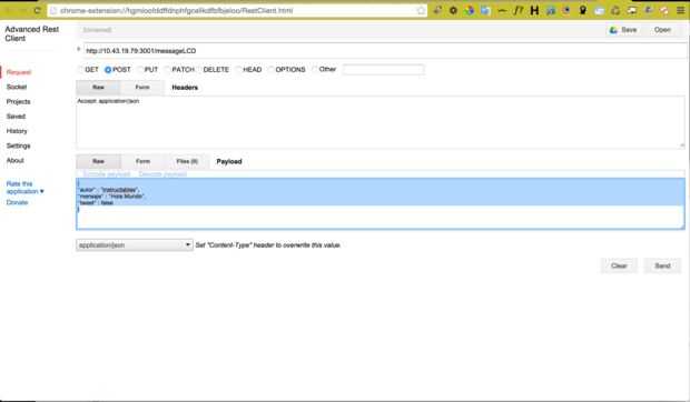 cliente de las Naciones Unidas de cuántos resto, en mi caso estoy utilizando avanzado cliente de Rest, para consumir el servicio resto expuesto por nuestra api en intel para enviar mensajes.