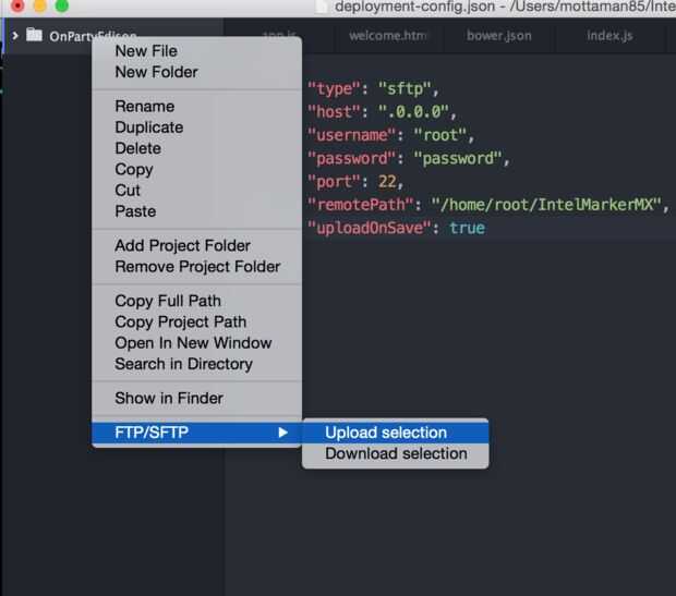 nos abre un json(deployment-config.json) el cual debemos configurar con los datos de conexión por ssh a nuestra intel Edison