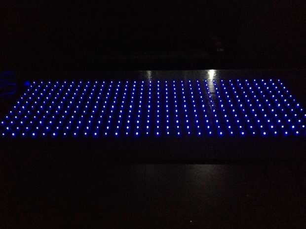 Al final del proyecto será poner en orden los cables y ocultar todo bajo la mesa, hasta entonces usted puede dejar todo suelto por si necesitas hacer cualquier cambio. Una vez que todo está conectado, encienda otra vez y usted debería ver la rejilla de LED vienen a la vida! La red LED pasará por diez diferentes animaciones de rejilla de LED. No te preocupes acerca de cómo el código funciona sin embargo, permite apenas consigue hacer construir primero la tabla. La documentación para el código comienza en el paso #43.