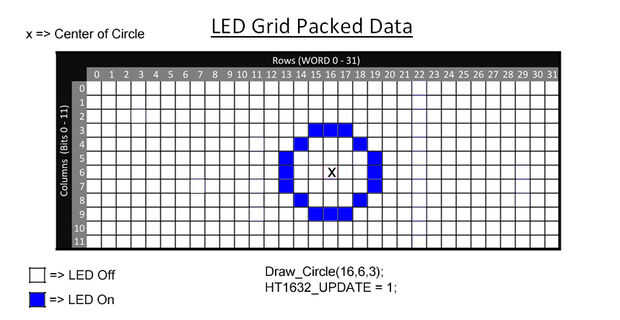 Esta función será modificar los datos de LED y crear un círculo alrededor del punto central (PX, py). El parámetro 3 define el radio del círculo. Foto #2 muestra un ejemplo de código siguiente: