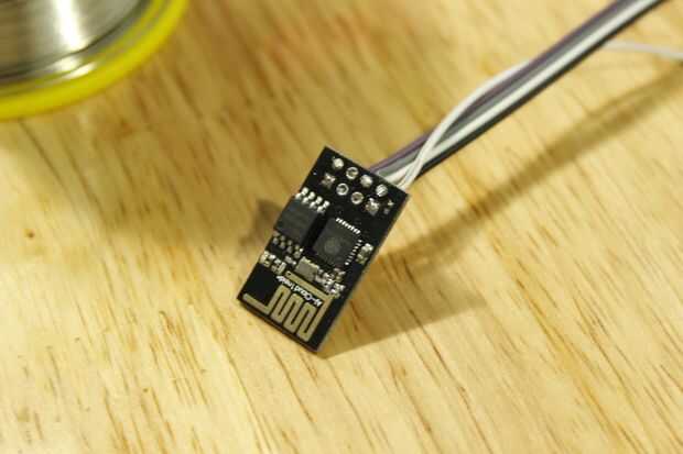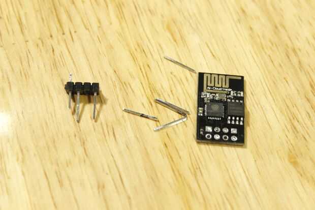 Debe editar el PCB de ESP8266 para la Asamblea fácil más adelante quitando el encabezado de ella y soldar los cables en los pines: VCC, GND, RXD, TXD, CH_PD.