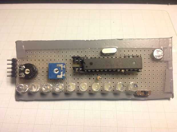 Si de entrada analógica = 5.00 V = 1024 pero en comunicación serial podemos solamente enviar un byte por vez por lo que 1024 es igual a 1, 0, 2, 4 y para el arduino, esto no significa nada por lo que debemos poner números entre 0-9 leds cuántos tenemos... Déjame pensar, sí! 10 así que 0 es para el primer 1 para el segundo y 9 es para el 10... pero cómo covert 1024 en 9 y 0 en 0 y 300 en 3... bien tienes que hacer dos operaciones, si 0 < x < 1024 (((x) * 9) / 1024) = 0 < x < 9 aquí estamos...
