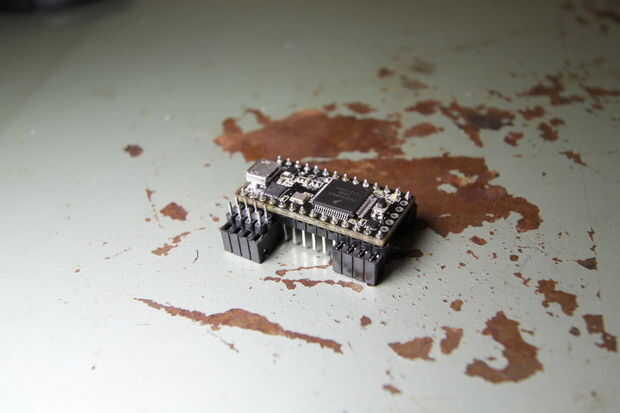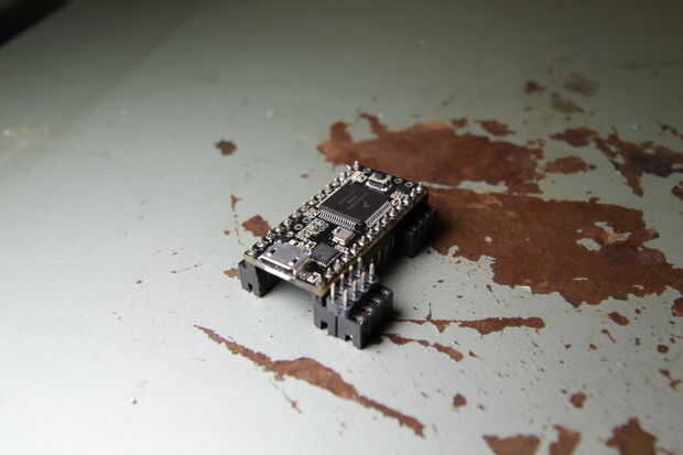 En primer lugar, algunos teensys vienen con cabecera pins ya soldados en ellas. Mía no, así que tuve que soldar los pines de cabecera en. Luego usé un par de 4 pines de puente largo de perno. Supongo que todo el largo puente se trabaja, o incluso más cortos, pero sugiero por lo menos tener uno en cada esquina, uno de 5V y tierra de la teensy (que son realmente las esquinas de todos modos) y uno de los pines 2 y 3 (que son los pines de datos y reloj en el teensy).