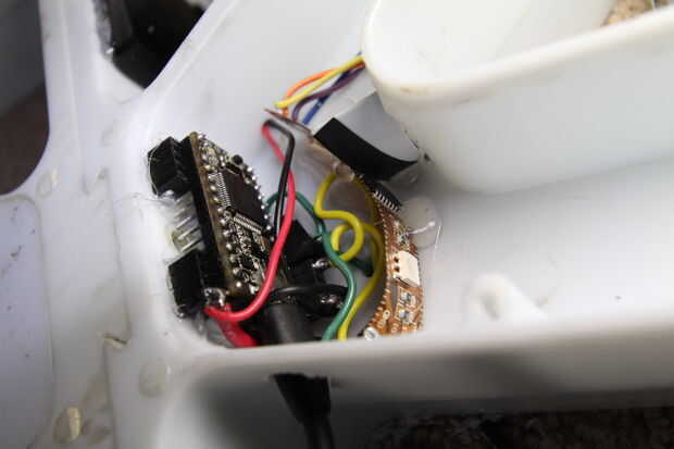 De todos modos, después de esto fue amañado para arriba, caliente pegué los pines de jumper en la rueda (aunque éstos fueron fijados a la teensy por lo que fueron en el lugar correcto.)
