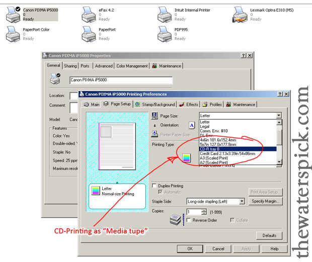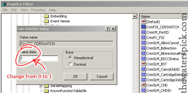 g. Haga clic en aceptar y cerrar regedit. Cuando CnmFSI_CDRSWITCH = 1 habrá opciones extra para impresión sobre discos imprimibles.