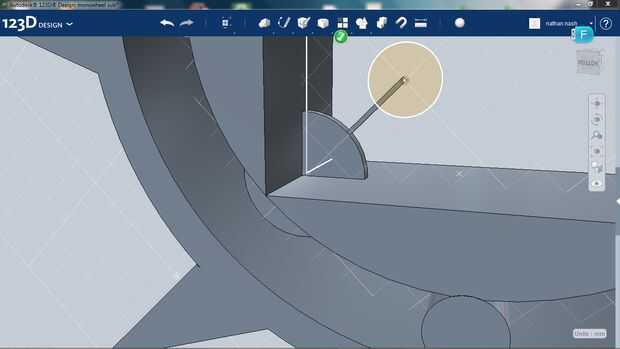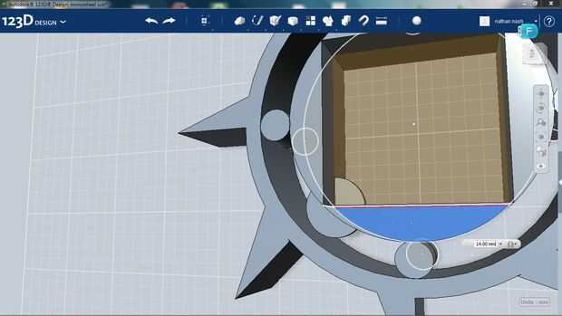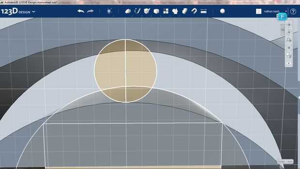 Después de dibuja un círculo en la parte inferior medio punto y extender al círculo interior y tire hacia arriba el círculo 2cm (por lo que cabe en el espacio).