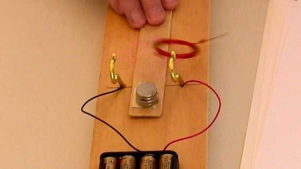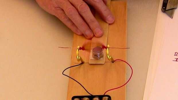Los ganchos de techo de bronce convertido en rodamientos, "cepillos" y ayudas mecánicas para la armadura en este motor simple.