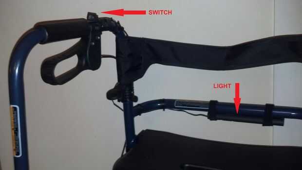 Ubicación: ¿Dónde quieres la luz de punto? Una linterna con una luz en el extremo se puede montar a lo largo de la longitud de un bastón o en las barras verticales de un caminante con la luz apuntando hacia el suelo. El beneficio de esto es que la luz brillará en los pies, aunque una sombra puede ser emitida por el bastón o caminador sí mismo. Montado la luz es mayor, cuanto mayor sea el área que se ilumina. Además, si utiliza un andador que ha inclinado ligeramente las barras verticales, la luz puede brillar abajo así como un poco hacia adelante. En una silla de ruedas, la barra vertical delante de uno de los brazos puede ser una buena opción. Tenga en cuenta que el reposapiés pueden bloquear algunos de la luz.