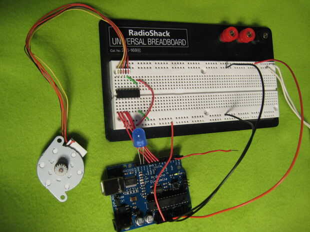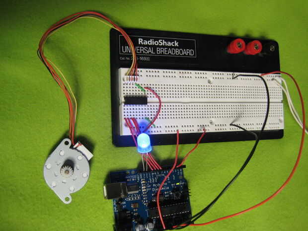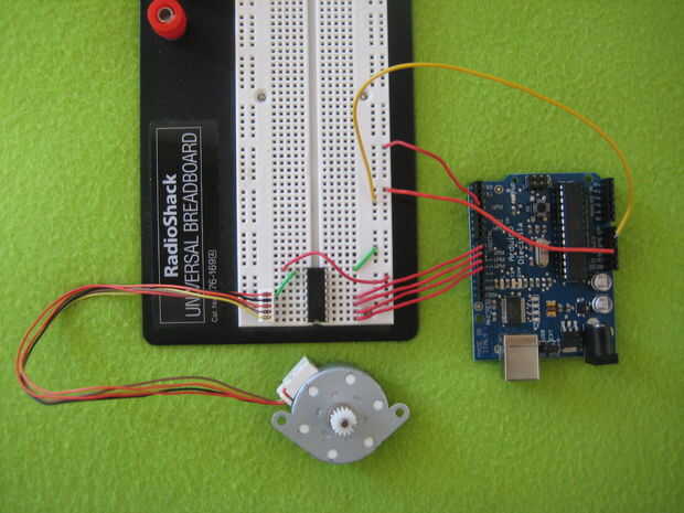 5V de Arduino también va al voltaje de Motor paso a paso en