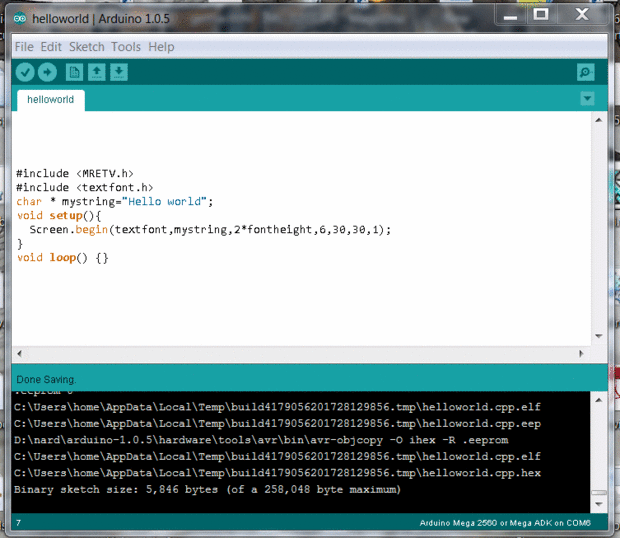 MRETV es tan fácil de programar como a construir, esto quedará corto. Los tres ejemplos siguientes le ayudarán a comenzar a utilizar MRETV en su propio trabajo. Se incluyen en MRETV.zip como SoftwareInterfaceExample.ino. Es mejor utilizar un programa de terminal para conectarse a MRETV para las pruebas de entrada (más que el monitor serial integrado en el entorno de Arduino.)