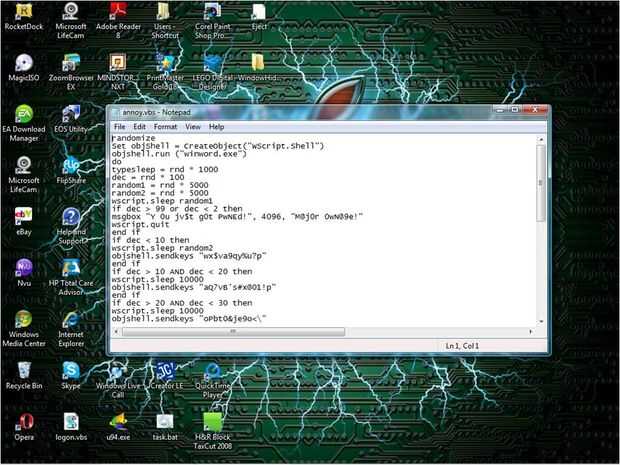 objshell.SendKeys "alerta de Virus!! Se ha detectado un virus. {entrar} ADVERTENCIA. Virus detectado!"