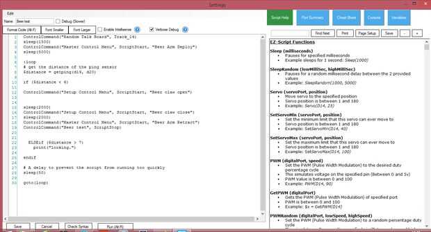 Como he dicho, yo pude ir en el listado todos los scripts aquí en este Instructable, pero esto haría que el Instructable muy largo como B4 E4 tiene toneladas de código programado. Recuerde, si usted tiene alguna pregunta sobre cualquier cosa sobre construcción o programación E4-B4, no dude en preguntar y yo haremos mi mejor para responder a usted. También puede tener un vistazo a uno de los proyectos de E4-B4 por haciendo clic aquíy abrir el archivo con el EZ-constructor. Estos proyectos fueron hechos disponibles para compartir con nadie y contienen una gran cantidad de los controles y programación de secuencias de comandos que se utilizan, incluyendo el objeto y el reconocimiento facial de programación se ve en los videos.