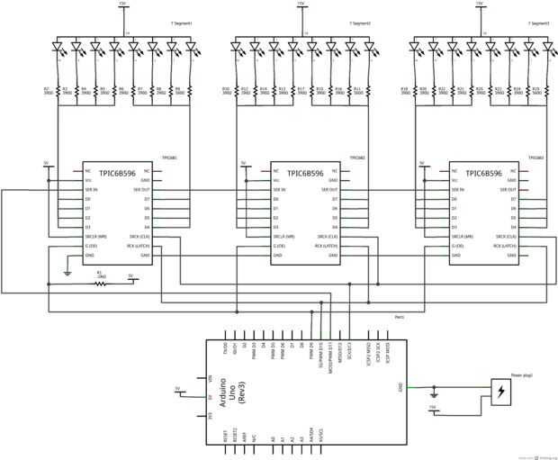 Ahora que sabes donde cada pin se conecta con, ahora puede elaborar tu esquema. El esquema que le doy es más simple y más fácil de entender que otros por ahí. Sin embargo, puede que necesite cambiar los valores de resistencia y tensión a los ánodos de la muestra.
