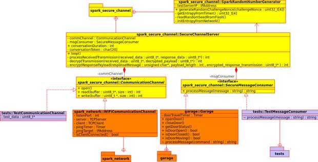 Este enfoque de diseño, es muy fácil de desarrollar y probar el SecureChannelServer. Si miras dentro de núcleo-firmware/bibliotecas/garaje/pruebas, usted encontrará implementaciones de prueba simulada de ambas interfaces, que permite escribir y depurar todo el código cifrado sin necesidad de hardware o incluso red.