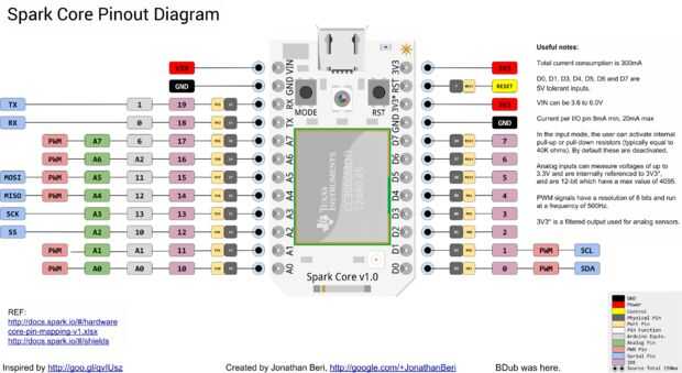 Puede encontrar más detalles sobre el hardware aquí: http://docs.spark.io/hardware/