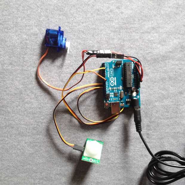 La línea amarilla de la señal del detector de movimiento está conectada en el pin 9 en el Arduino.