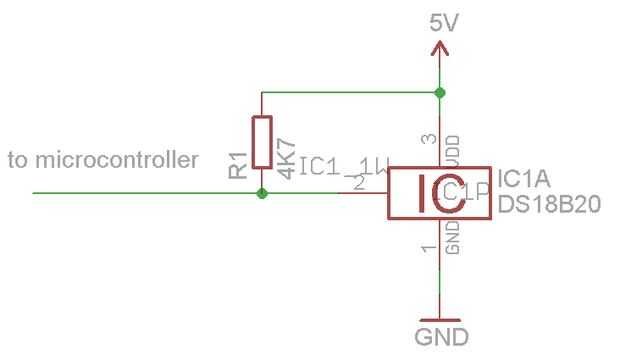 La línea de datos DQ tendrá una resistencia de 4K 7 pullup y puede conectarse a la gran mayoría de pines en el microcontrolador.